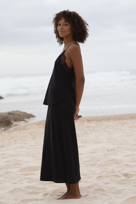 ALLEGRIA BLACK BIAS LINEN DRESS