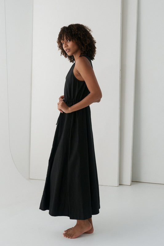 RUBY BLACK LINEN DRESS